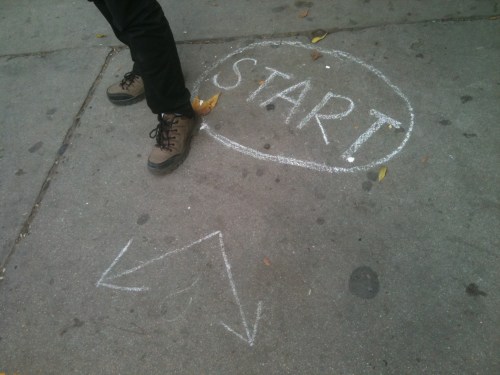 The two “hares” for this run were “Hot Karol” and “Rock Fondler” (members are given unflattering names after their fifth run).  Hot Karol explained that they have designed a trail for us “hounds” to follow, and had left clues on the streets of Xi’an by way of arrows drawn in chalk.