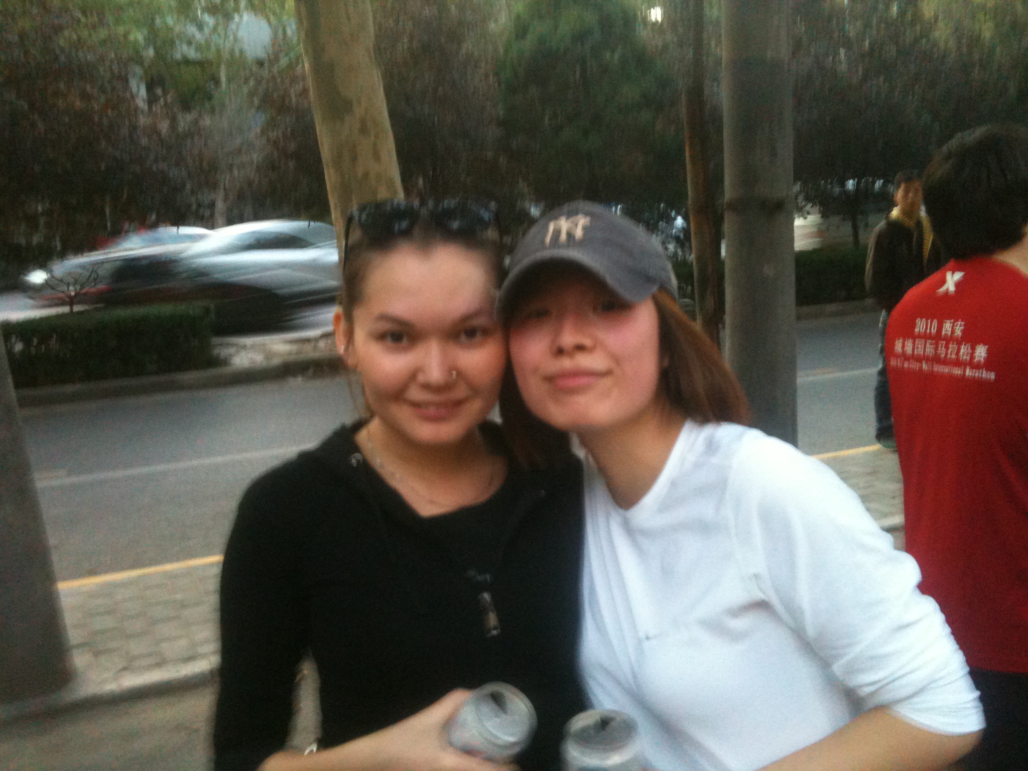 We ran through crowded intersections, dirty alleyways, and residential parks.  We ran up flights of stairs, across bridges, through the inside of a museum, dodging cars and pedestrians all the while yelling “On!  On!” every time someone saw a new arrow.  The bewildered locals must have thought “What the heck is wrong with these crazy foreigners?” as our group huff-and-puffed our way through the heavy Xi’an traffic.  Because of the numerous dead-ends the sadistic hares left us, it took us almost two hours to complete the run.